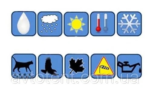 Надёжно удерживает воду сверху, не пропуская её под тент. Имеет качественную подкладку, доступ в салон через молнию со стороны водителя и боковые карманы для зеркал.