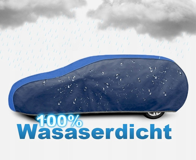 Автомобільний тент Perfect Garage виготовлений з 4-шарової водонепроникної паропроникної мембрани з гладкою, м'якою на дотик знизу тканиною. Мембрана, з якої виготовляється PERFECT GARAGE, на 20% товстіша, але в той же час м'якша, ніж мембрана MOBILE GARAGE. Завдяки цим властивостям матеріалу тент повністю водонепроникний і в той же час проникний для водяної пари, що виходить з-під тенту. Ефективно захищає машину протягом усього року. Ідеально підходить для сонячних та спекотних днів, тому що запобігає надмірному нагріванню салону автомобіля влітку. Він також добре працює взимку, тому що захищає автомобіль від надмірного охолодження, а також кузова, від снігу та морозу. Він не замерзає на машині. Він також захищає автомобіль від несприятливих впливів навколишнього середовища - від дощу, листя, квіткового пилу, соків дерев та пташиного посліду. Автотент надійно утримує автомобіль, що важливо за сильних поривів вітру. Не дряпає автомобіль. Його дуже легко надіти і витягнути, а у складеному вигляді він не займає багато місця. Чохли PERFECT GARAGE призначені для внутрішнього та зовнішнього використання протягом усього року. Ми особливо рекомендуємо їх клієнтам, які бажають, щоб тент був повністю водонепроникним, а внутрішня поверхня автотенту, якою стосувався лак автомобіля, була гладкою та м'якою. Автомобільний тент також призначений для клієнтів, які очікують довговічність покриття навіть протягом декількох років, навіть при інтенсивному використанні. Тент для автомобіля PERFECT GARAGE добре встановлюється, надійно закріплюється традиційним знімачом зі шнуром навколо всього автомобіля, виготовлений з міцного та м'якого матеріалу всередині, тому його можна безпечно використовувати навіть у вітряну погоду. Хоча темно-синій колір темний, чохол PERFECT GARAGE має ще більшу стійкість до сонячного випромінювання. Через верхню частину обкладинки проходить напис Kegel-Błażusiak KB Textil